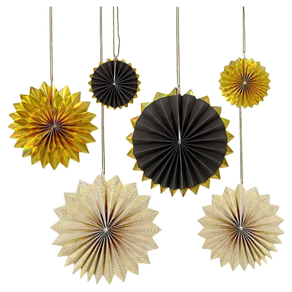 If you’re planning on adding a touch of color to your party space, or if you want to jazz up your home with some beautiful decorations, these gorgeous paper pinwheels are exactly what you need. Available in packs of six, with three different sizes, these cheery decorations feature a pinstripe of beautiful pastel colors, and are finished with a band of shiny gold foil, making them a brilliant focal point for any occasion! Black and Gold Neon print & gold foil detail Simple self assembly required Pack of 6 in 3 sizes Product dimensions: Small – 165mm, Medium – 279mm, Large – 381mm SKU: 45-2003