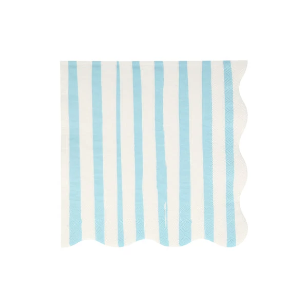 Blue and white stripes are the perfect color theme for any special celebration. These napkins also have a delightful scalloped border for a stylish effect. 3-ply paper Scalloped border Made from eco-friendly paper Pack of 16 napkins Folded dimensions: 165 x 165mm Pack dimensions: 165 x 165 x 13mm 224361