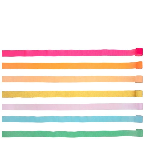 These rainbow paper streamers are perfect to add a splash of color to any party. Featuring seven different colored streamers. Neon & gold detailof 7 in 7 coloursProduct dimensions:Streamer length – 838mm SKU: 202953