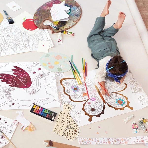 These beautiful gold foil butterfly illustrations from Meri Meri are fabulous to colour in – perfect for a rainy day or creative craft session at any time. They come packaged in a pretty box, so make a brilliant gift for kids with an artistic flair. Butterfly Colouring Posters from Meri Meri. Gold foil illustrations. Suitable for ages 3+. Made from eco-friendly paper. Pack of 2. Product dimensions: 762 x 502mm.