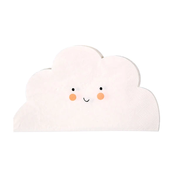 These delightful napkins come in the shape of clouds and are finished with a cute smiley face. Pack contains 20 napkins. Napkin size (unfolded): 13 x 13 inches. Pack size: 7 x 7 inches. New Part Number: 157051