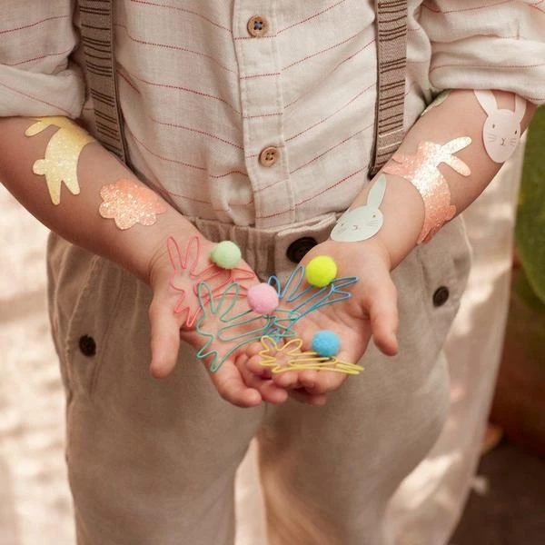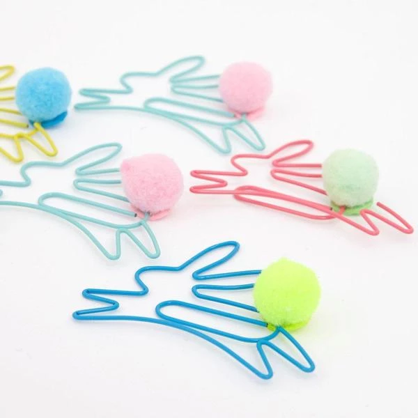 Fügen Sie einen Hauch von Frühling Spaß an Papierkram mit diesen Brillanten bunny förmige Büroklammern. Perfekt als Oster-Geschenk oder pop in Partei-Taschen. Beschichtetem Draht-mit Bommel-detail -Geeignet für Alter 14+Pack von 6- Box Abmessungen: 191 x 102 x 19mm