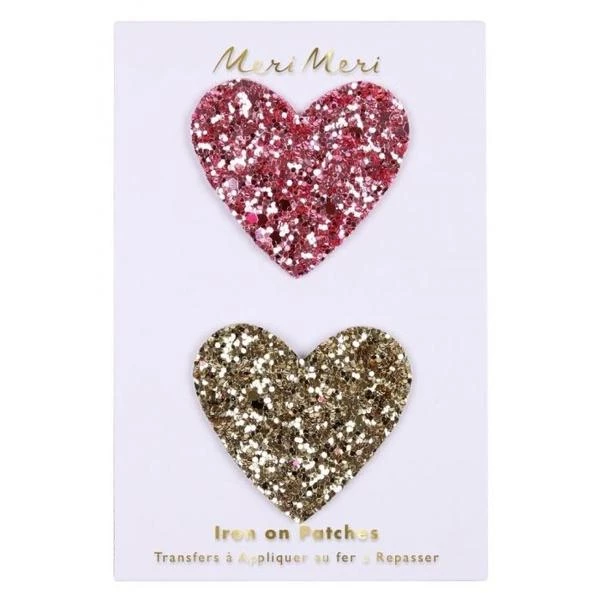 Der absolute Trend. Patches zum Aufbügeln! Hier in der Variante mit viel Glitzer und in Form von jeweils einem rosafarbenen und goldenem Herzen. Packungsgröße: 7,5 cm x 11,5 cm