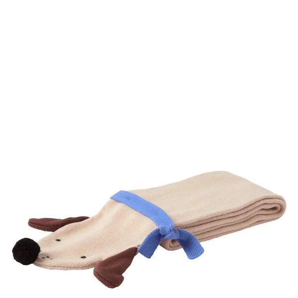 This adorable puppy scarf is a super cute accessory for cold days. Made from soft organic cotton with sweet stitched features, floppy ears, a tail, and a gorgeous pompom nose. Age 3+ Colour: Beige, brown, blue Stitched features, Floppy ears & tail, pompom nose Material: Organic Cotton Care: Spot Clean Only Size: 1321 x 159mm