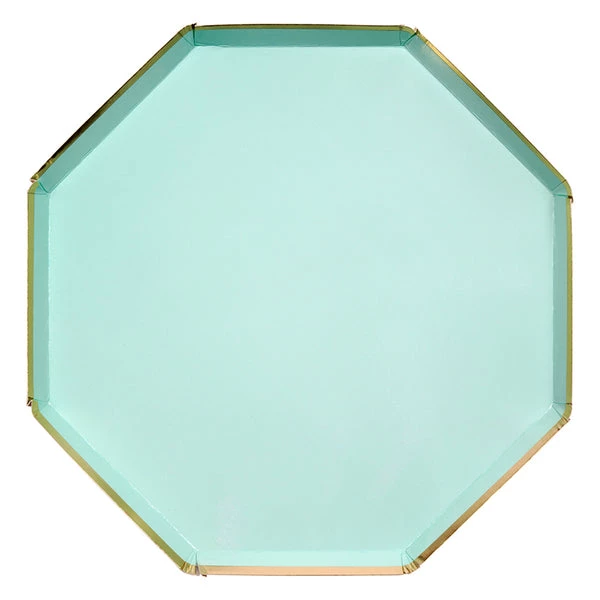The combination of a gorgeous mint color with a shiny gold border makes these dinner plates really beautiful. Made from high-quality card with a superb gloss finish. Pack of 8 plates Gold foil detail Printed both sides Pack size: 260 x 260mm 181171