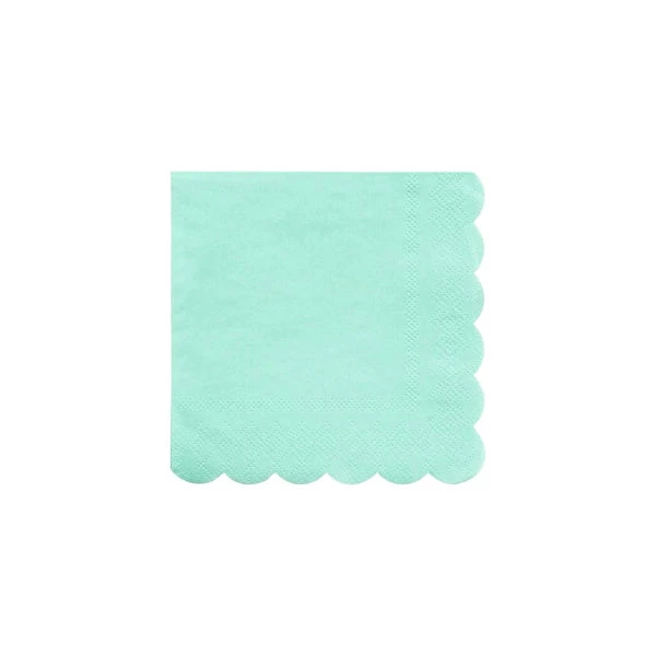 Practical yet beautiful, these small napkins come in a gorgeous mint colour with a stylish textured scallop edge. Made from top quality thick ply paper. Scallop edge Pack of 20 Folded dimensions: 127 x 127mm SKU: 181207