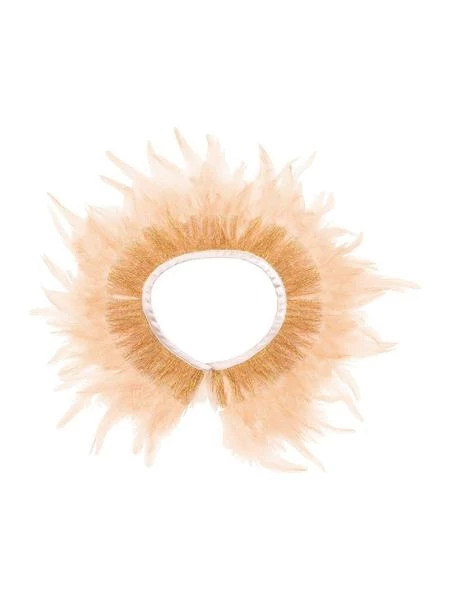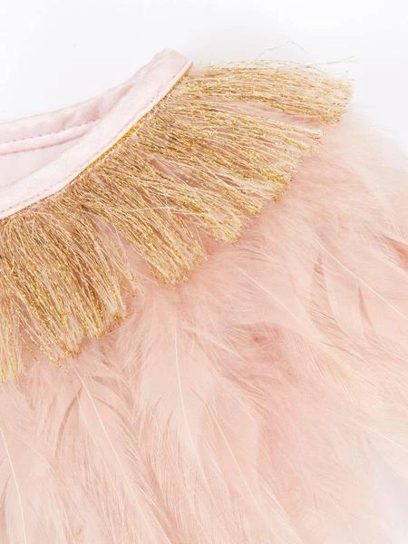 This very pretty feather collar is perfect for dress-up time or when you simply want an outfit to look extra smart! Beautifully designed and crafted from satin lined peach feathers and gorgeous gold thread detail. This charming collar is made from satin lined peach feathers, and will make any outfit look party fantastic It has gold thread fringe detail around the collar for a shimmering stylish effect It is easy to put on and close with a popper fastener Suitable for ages 3-6 years Product dimensions: Neck – 432mm, Length – 165mm SKU: 198325
