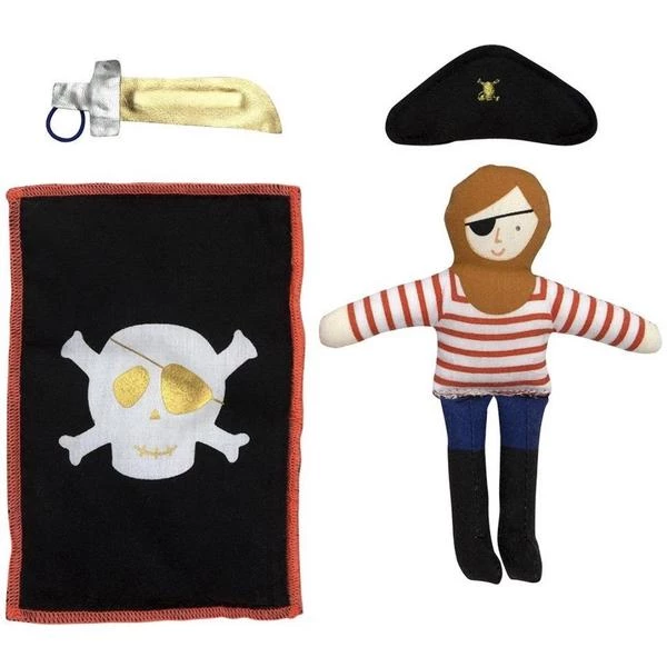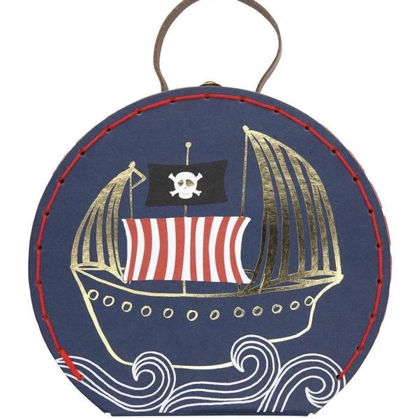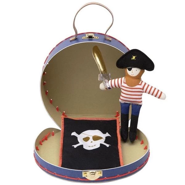 This is a sensational gift for a little would-be pirate. Featuring a suitcase, beautifully illustrated with an amazing ship, with a swashbuckling pirate inside. Perfect to take on adventures or imaginative play at home. Cotton doll with felt hat & leatherette sword Cotton quilt Ship case with leather handle & metal clasp Neon stitching & gold foil detail Pack dimensions: 146mm x 133mm x 51mm