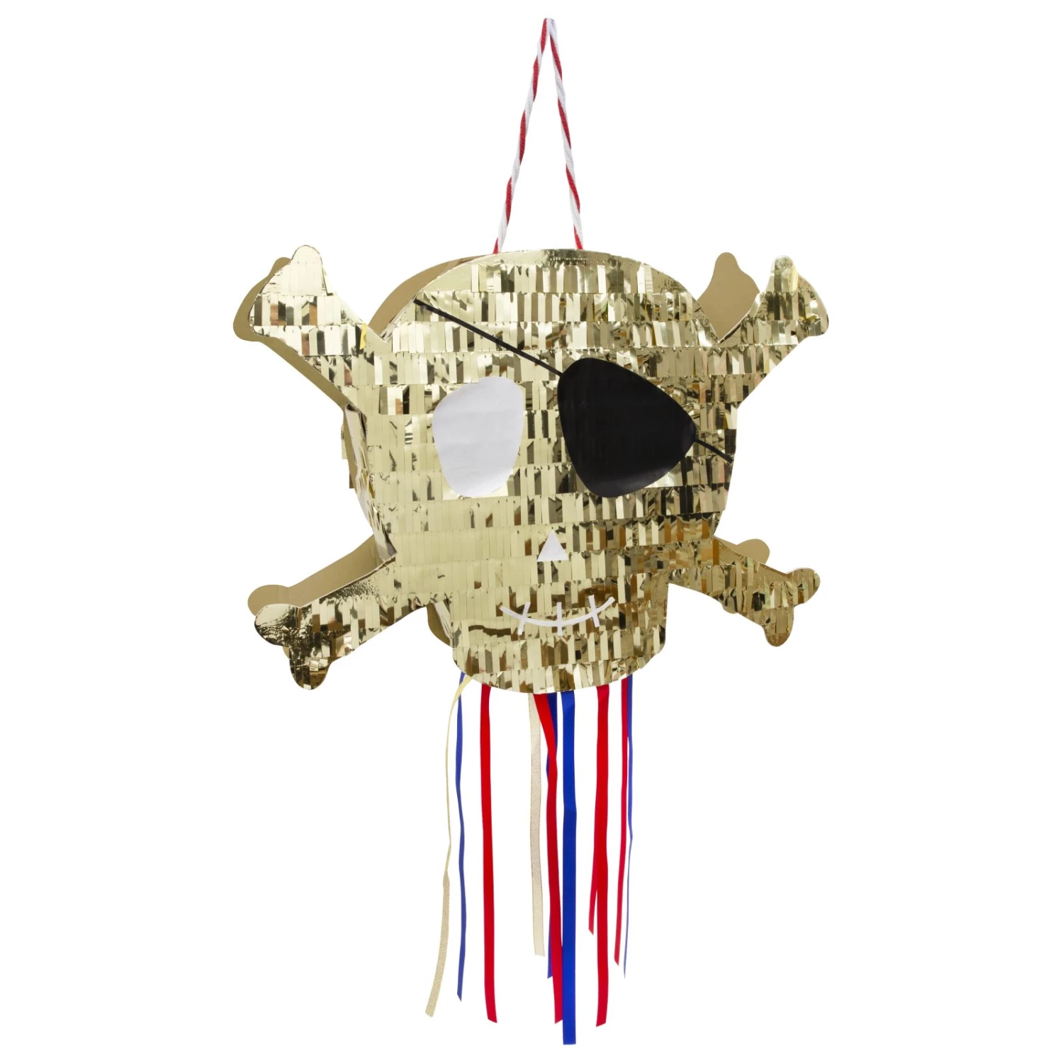 This smiley shiny skull pinata is brilliant for little pirates to pummel to get lots of party treats.