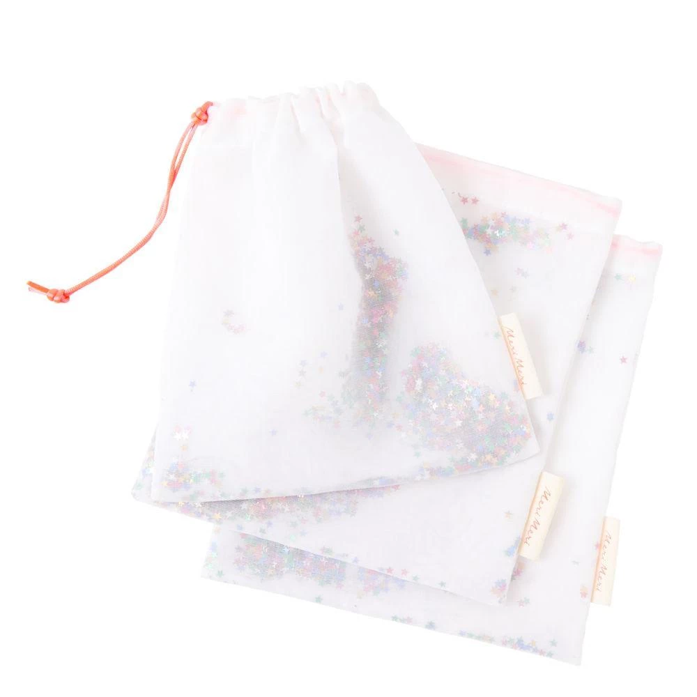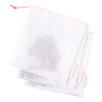 3 pretty little mesh cloth bags with glitter inside to wrap your Christmas gifts in the most beautiful and original way.