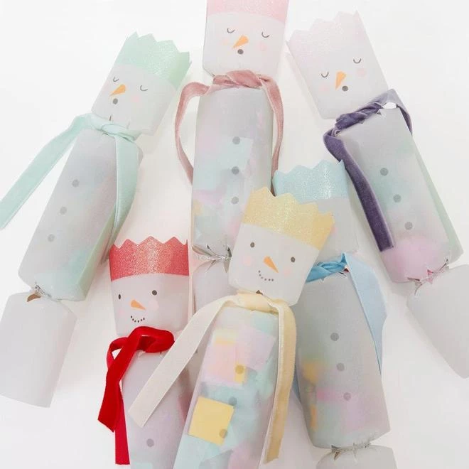 These snowmen crackers are really special! Beautifully designed and crafted, with colorful glittering crowns and sumptuous velvet scarves, they will look amazing at your celebratory meal.