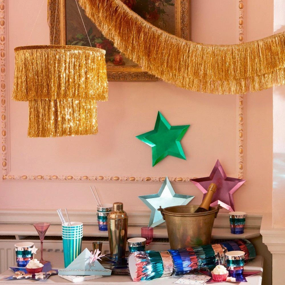 If you’re looking for a stylish way to add shimmer and shine at a party or to decorate a special part of your home, then you’ll love this gorgeous gold glitter chandelier. Beautifully crafted from shimmering tinsel, with velvet and cord detail, it’ll add sparkle and shine.